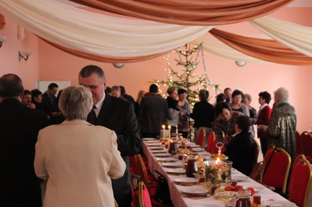 Przy wigilijnym stole zebrało się 135 osób : podopieczni trzech świetlic z rodzinami, księża, przedstawiciele władz samorządowych, zaproszeni goście, wolontariusze.